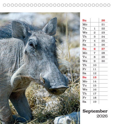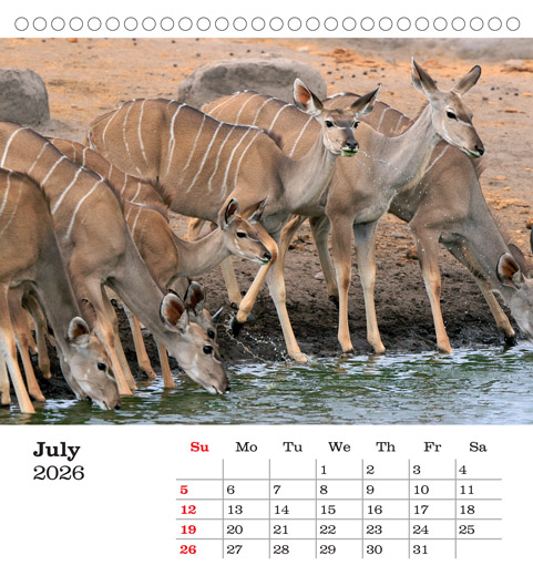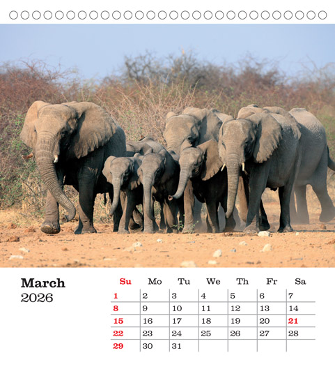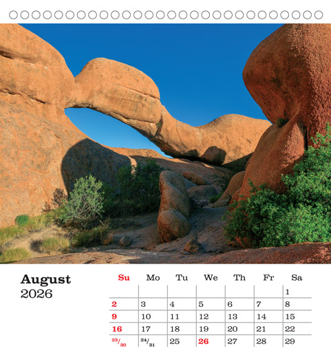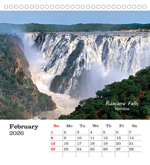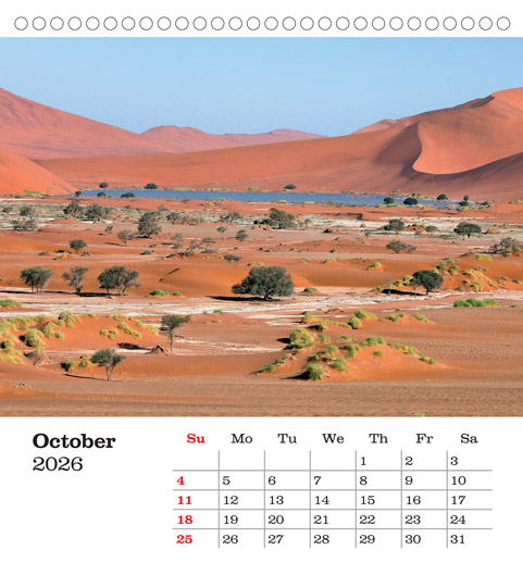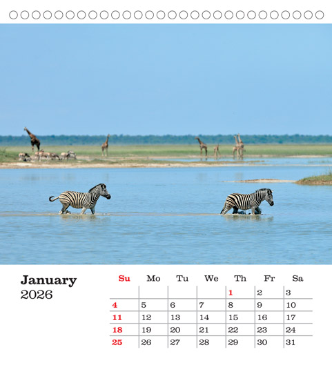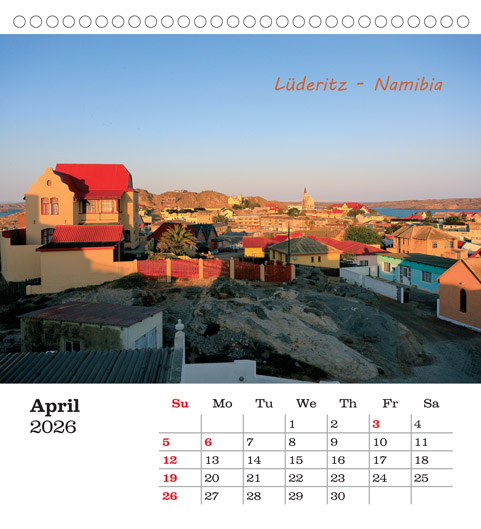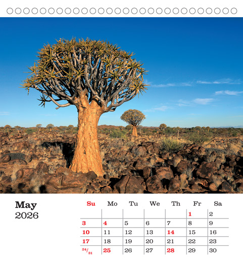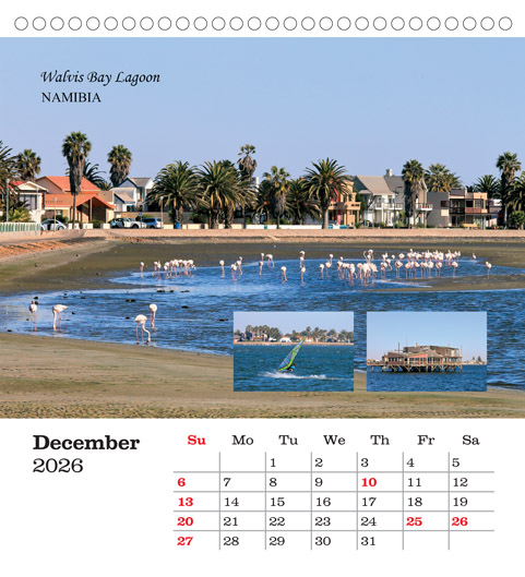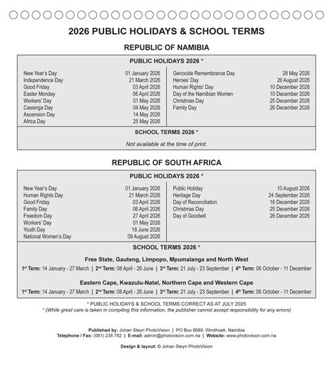 Namibian and South African school terms, as well as national holidays are detailed on the back page of the calendar.